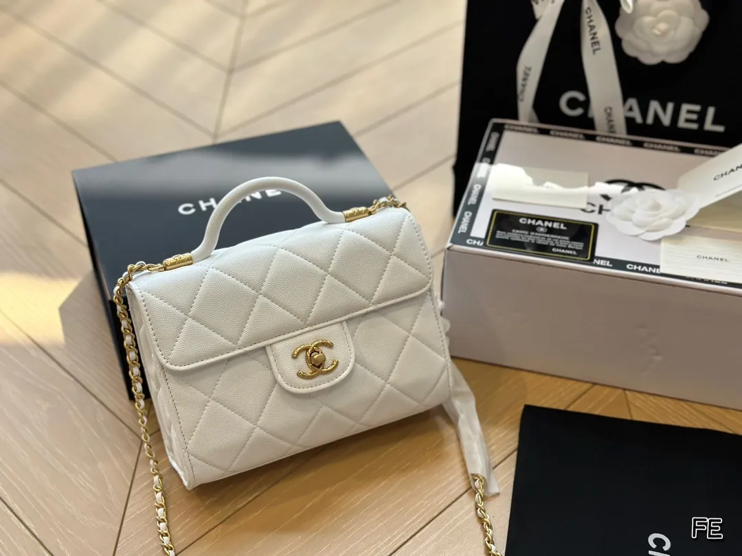 Pearl Crush Mini Square Flap Bag White Lambskin Light Gold Hardware