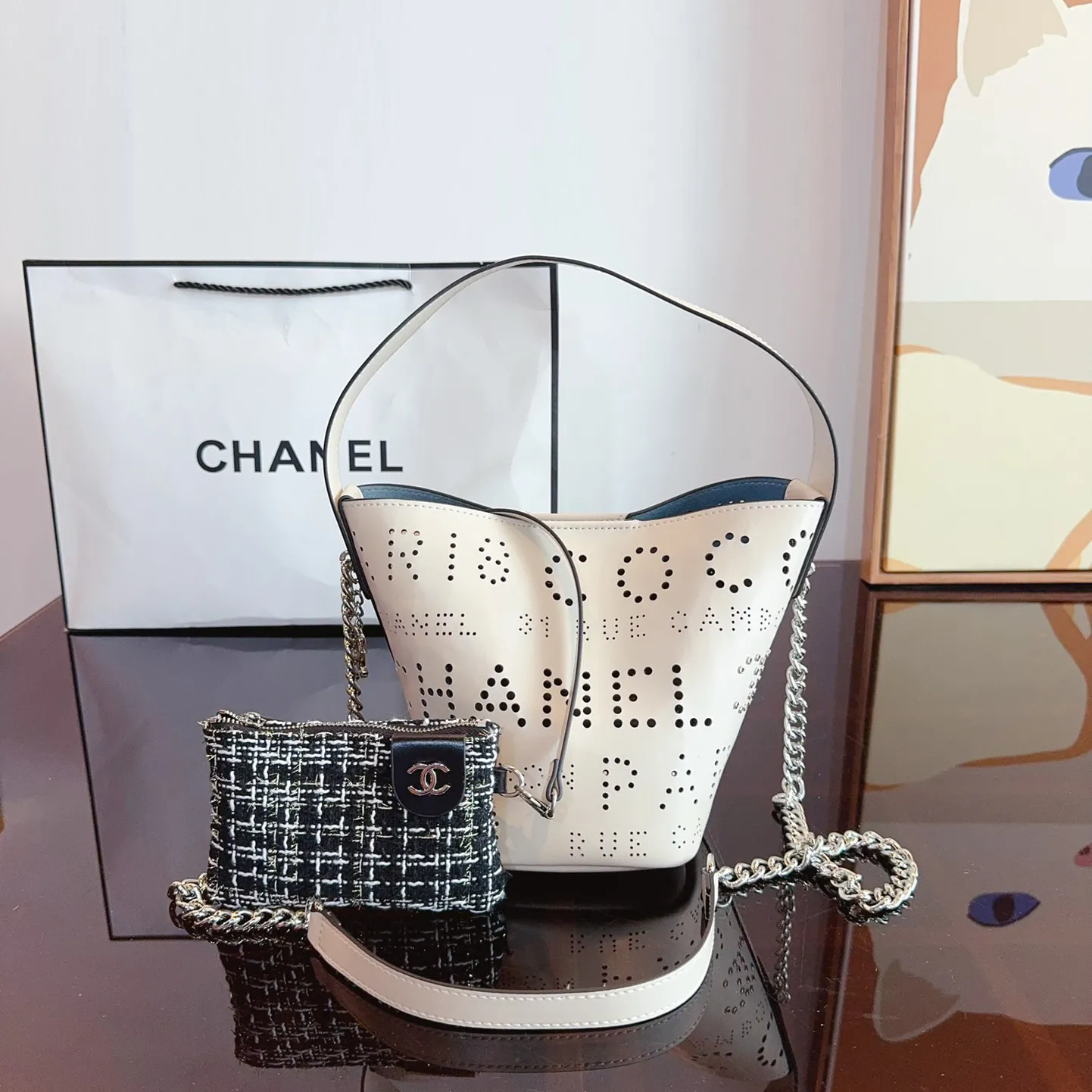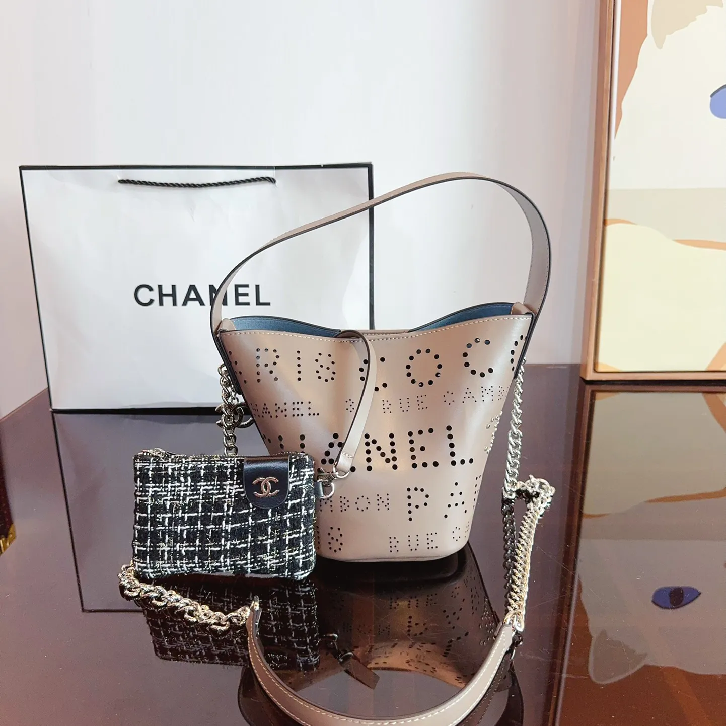 Calfskin Tweed Small Piercing Light Bucket Bag