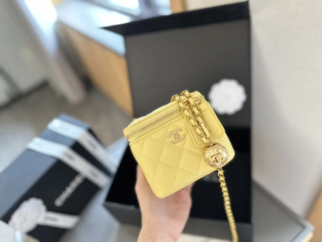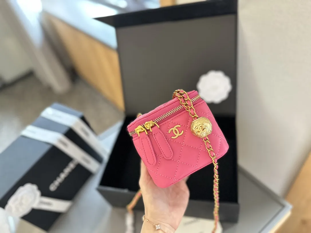 Pearl Crush Vanity Case with Chain Quilted Lambskin Mini