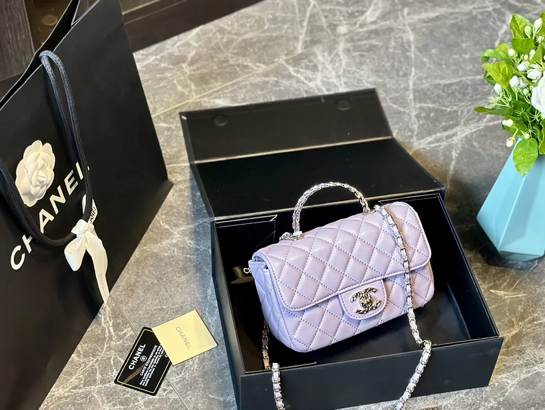 Lambskin Quilted Crystal Top Handle Rectangular Flap
