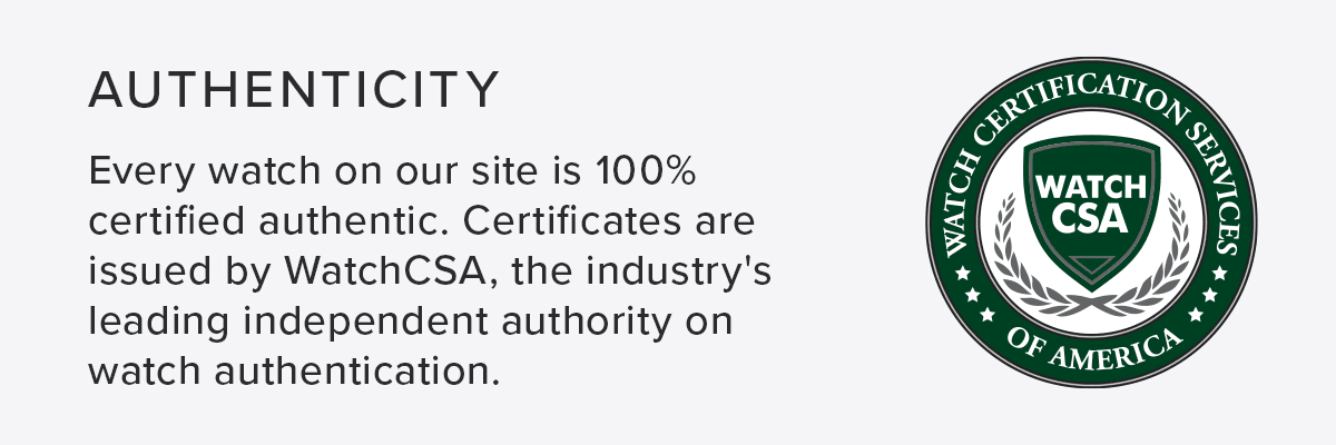 DetailCertificates are issued by WatchCSA, the industry's leading independent authority on watch authentication.