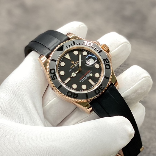 Yacht Master 1 Golden Diamond Bezel Black Dial Rubber Strap 40mm