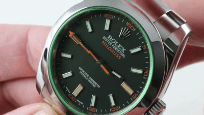 Swisstime.sr Rolex Milgauss Swiss Replica watches are equipped with the new SuperLuminova™ Blue and Green glow luminescent pigment that after sufficient activation by sunlight or artificial light will glow in the dark up to 9 hours with uniform luminosity throughout.