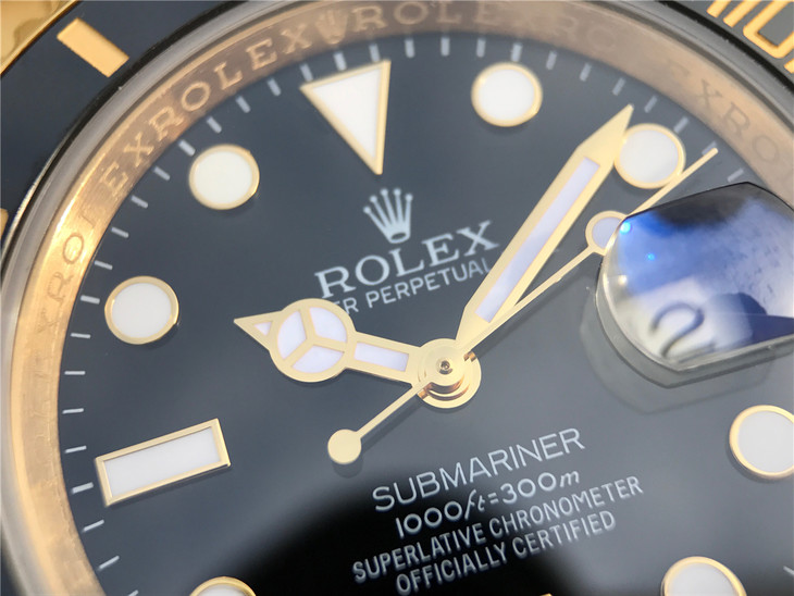 Rolex Submariner Swiss Replica watches are equipped with the new SuperLuminova™ Blue glow lume pigment that after sufficient activation by sunlight or artificial light will glow in the dark up to 9 hours with uniform luminosity throughout.
